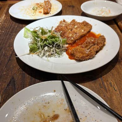 中華風の唐揚げが有名なお店です。 リーズナブルでパスタなどのランチもあります。 今回はデラックス春巻き定食でした。