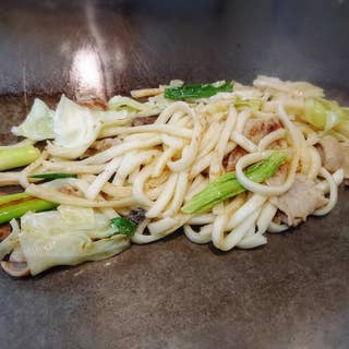 【佐用町のソウルフード】 兵庫県佐用郡佐用町、中国道佐用ICから も近いコチラは佐用名物「ホルモン焼き うどん」を食べさせてくれるお店。 そう言えば岡山県津山市にも「ホルモン うどん」という名物があるが、津山は 焼うどんのように鉄板の上でタレを 絡めて炒めるのに対し、佐用町は 別添えのタレにつけていただく “つけ麺スタイル"なのだとか。 その「ホルモン焼きうどん」を うどん2玉でオーダー。 待つ間につけダレを準備。タレは しょうゆ(辛口)と味噌(甘口)の 2種類。おススメは1:1の割合とのこと。 薬味(柚子おろし、ニンニク、一味)は お好みで。 店主が軽く炒めて混ぜ合わせたうどんが 目の前の鉄板に到着。 うどんは平麺で,結構柔らかめの食感。 ホルモンはミックス、豚バラ肉も加わり ボリューミー。 ホルモンの甘みと歯ごたえ、キャベツの シャキシャキ感、鉄板でこんがりと 焼けた麺の”おこげ”と香ばしさ…、 パンチの効いたつけダレにくぐらせると 超美味♬ あっという間に完食(^_-) 店ごとにタレの味に違いやこだわりが あるらしく、機会があれば食べ比べも してみたい。 ご馳走様でした! #ホルモン焼きうどん