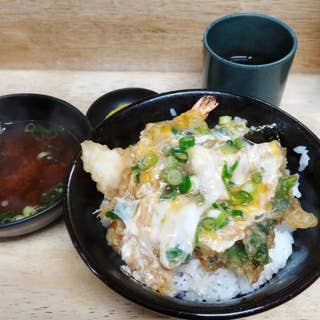 天玉丼。赤出汁も頼んだけど忘れてたみたい(笑)天玉丼より天丼のほうが美味しい気がします。