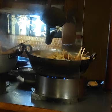 奈良のおでんならココ!という 記事を見て電話予約の上、 妻と伺いました。 店外には順番待ちの長い列。 それを尻目に入店できました。 「竹の館」というだけあって 店内はのモチーフは竹。 素晴らしく良い感じです。 さて、どんなおでんがあるんだろ? メニューとにらめっこして 私 梅焼、すじ、フランク、厚揚げ、たまご そして…冷酒とごはん! 日本酒は『日本盛』のみ。 妻 大根、つくね、ごぼう巻、餅入り巾着、 たまごに梅酒のソーダ割り 調理場には釜が4つ並んでおり、 少なくとも3回に分けて 煮しめていらっしゃるようです。 こだわり半端なし。 これは期待大! まずは、出汁。 程よい塩梅で、タネの旨味がギュッ! これですよ。コレ! 惚れてマウでね~か! さて、早速実食。 謎だった梅焼き。 結構大振りで梅花の形。 かまぼこの位の歯応えが心地よい、 ボリューミーなタネ。 すじは、よくよく煮込んであり、 臭みもなく、トロける触感。 いくらでも食べられる一品。 フランクだけは、少し残念… 食べ応えはあるものの ダシが汁に出てしまっている。 勿体ないなあ… 厚揚げは、少々小ぶりながら フワフワに煮あがっており 染込んだダシとともに珠玉の一品。 当然、たまごもしっかりとシミシミ。 妻の大根は箸に抵抗がないほど。 どのネタも、 おでん屋さんならではの逸品揃い!!! 最後の〆は… おでんの汁をご飯にかけて シャバシャバ!!! いや〜 極楽じゃ〜!!! 満足、満腹! ごちそうさまでした。 #こだわりのおでん #本物のおでん #接客さわやか◎ #リーズナブル #食事も呑みもOK #超人気店