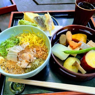 大神神社の参拝ついでに立ち寄れる、落ち着いた雰囲気が魅力の和食店。看板メニューである三輪素麺は、まろやかな出汁とともに提供され、これまでの素麺のイメージが変わるほどの美味しさと評判です。季節を感じられる野菜の煮物や、サクサクの天ぷらもセットで楽しめ、満足感たっぷり。丁寧な料理がリーズナブルな価格でいただける、心も体も満たされるお店です。