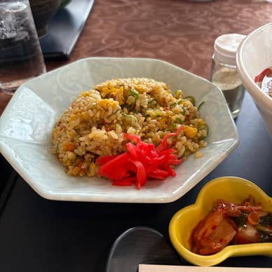 醤油ラーメンと炒飯のセット。 奈良県御所市にある秋津原ゴルフクラブでプレーさせて頂きました。とても綺麗なコースで、この日は4組ほどコンペが入ってましたが、詰めん混んでない為、ハーフが2時間ちょっとで気持ち良く回れました。男性のキャディーの方のアドバイスも受けて途中から改善できたのも嬉しかった。 ランチには醤油ラーメンと炒飯のセットを。 プレー後には天ぷら、刺身、鉄火巻き、にゅうめんなど頂きました。ラーメンは普通でしたが、プレー後のご飯が美味しかったです。