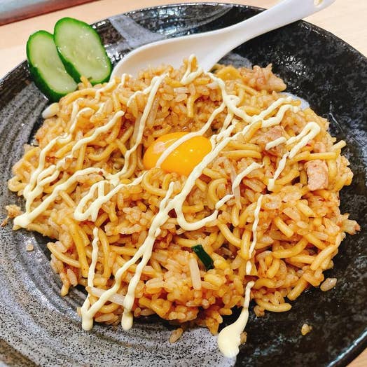 先ほどの麺にライスが加わり、タレは同じなのでベースは同じ味ですが、卵黄とマヨが乗っているのでまろやかです。