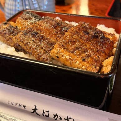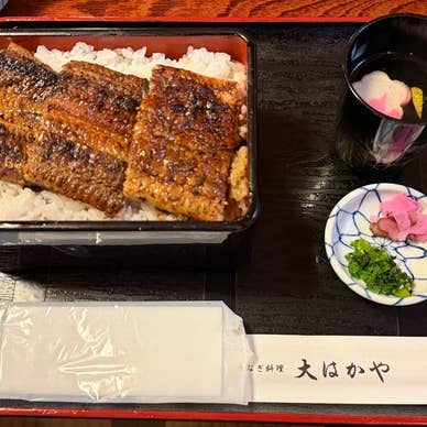 2025/11/22 松江イングリッシュガーデン駅 大はかや うな丼並2,750円 うマキ、骨せん(お値段は忘れました) うなぎは炭火焼き、しっかり皮は焼かれ、 タレの香ばしい香り ふっくらでも、弾力のある肉感 ゴハンもタレがしみしみ ウマキは多分骨からとったお出汁で巻いてあるのかな 骨せんはタレを絡ませて焼いたもの、カリカリではなく、ジュワッとした初めての骨せんの味わいでした 大はかやは、このお家の屋号です 駐車場奥にお墓があって、これが由来、屋号なんて今では使いません ごちそうさま