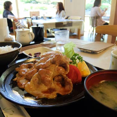 広島から江津大田方面に向かう国道261号沿いの道の駅内にあります。 すぐ側に、雄大な江の川が流れています。 写真は、生姜焼き丼と、カツ丼とカツカレーを一緒にした あいがけカレーです。 名物は他に、鳥の唐揚げ定食があります。 気軽に、食事をするのに適したレストランです。 裏庭の池の周りで、よく鴨が散歩してます。 のんびりと鴨でも眺めながら食事出来ます。