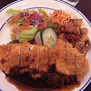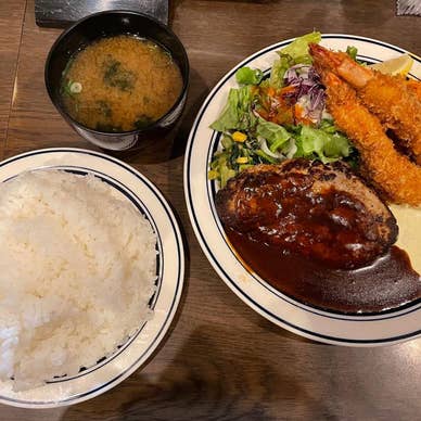 【スペシャル定食(大盛り)】 岡山県倉敷市にあるアットホームな雰囲気の人気洋食店。 あまり大きなお店ではなく、店内はちょっとぎゅっとした狭さを感じる。 が、レトロな感じもあり、落ち着いた雰囲気で、町の洋食屋さんといった感じが気軽に利用しやすい。 さすが人気店。満席でちょっと待つかな?と思ったら…かろうじてカウンターの1席が開いて、待たずに座る事ができました。 メニューは豊富で… ・合挽料理 ・鳥肉料理 ・豚肉料理 ・牛肉料理 ・オムライス ・魚介料理 ・セットメニュー ・カレー ・その他 と分割されていて分かりやすく親切なのだが… 豊富すぎて、悩んでしまう… なので、こんな時は… 「スペシャル定食(大盛り)」だ〜‼️ 何も考えずに、つい大盛りにしてしまいました… 出てきたライスは漫画盛り❗️ しまったぁ〜、お昼、食べ過ぎたんだよなぁ… ハンバーグとエビフライの最強コンボは… 厚みは普通だが、面積がかなり広いフワフワ系のハンバーグ。 大人の掌を広げたぐらいはゆうにある。 たっぷりのデミグラスソースはちょうどいい甘味と酸味だ。 肉感しっかり、旨味もしっかり感じられ、ソースなしでもライスが進む。 エビフライもかなり大きなサイズ。 太さもあり、プリップリの食感で食べ応えあり。 サラッとしたタルタルソースがほど良い酸味てクドさがないのがグッドです。 ボリュームたっぷりだが、優しい味わいなので、ドンドン食べ進めます。 昼間食べ過ぎたてしまい、ちょっと苦戦。が、なんとか腹がちぎれそうになりながらも完食…大盛りにするんじゃなかったと後で後悔… 店を出ると、行列&車の中で待機されてる方が多数。 さすが人気店。 また訪問したくなるお店なのは間違いない。 近くにあったら通うだろうなぁ〜。 なんとか帰宅するものの、まだ腹がちぎれそうだ… こんな日は、よしよししてほしくなる… #人生には飲食店がいる #町の洋食屋さん #人気洋食店 #ボリューム満点