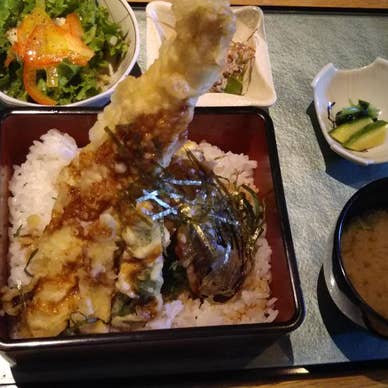 土曜日なのに観光客少なめに感じます。 やはり被災市の影響でしょうか。 前からお友達オススメされてて初来店♪ 店内すっきり。掘炬燵テーブルは仕切りがああります。 穴子天重御膳穴子以外にも季節の天ぷらでご飯もしっかり、美味しく満腹。 夜メニューの鴨鍋が気になる、、、うーん、次は夜か? ランチは数量限定だけどいろいろあるのも良いですね ごちそうさまでした(*^^*)