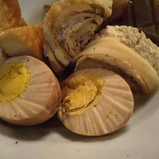 久々の来店。まずは生ビールで乾杯。 なすの揚げ煮見た目よりさっぱり。 ごま豆腐テッパン。 クリームコロッケ大ぶりで繊細。 ハモ湯引き梅タレと骨切りキチンとしていてハモの身の淡い味と歯ごたえ感じ。梅サワーからの梅酒ロック。 おでんの白菜揚げ巻きはオリジナル?蒟蒻の細かい仕事で味シミシミ。 まかないサラダでフィニッシュ。 レジ横の細長い木製の箱?は昔の消火器だそう。至るところの棚や壁の隙間にいろんなぐい呑があったりと、見所満載。お隣に座ったカップルはイングランドから。カレイの唐揚げの骨が食べれると知らなかったよう。五感で楽しめたひとときでした。次は私もカレイの唐揚げたのもっと。