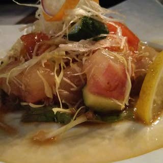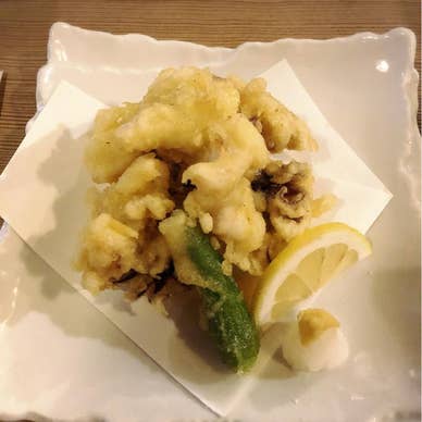 古いお家をリフォームしたお店で、雰囲気も一緒に楽しむ事が出来ました。 コース料理を頼んでおられる方が多かった様子でしたが、私達早く単品でしたが色々頼みました。 お店の方にお勧めをお聞きしたら胡麻豆腐豆腐言われました。 私は写真のメバルの唐揚げが美味しかったです。