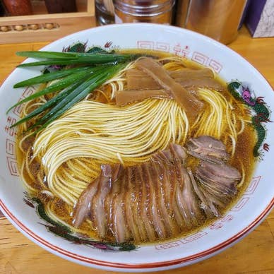 井原駅から徒歩15分の場所にあるラーメン店は、美しい盛り付けと透明感のある鶏ガラ醤油スープが特徴の笠岡ラーメンが名物です。地元の製麺所による細ストレート麺に、丁寧に仕上げられた親鶏チャーシューや青ネギ、メンマなどトッピングも絶妙。セルフ精算機での注文スタイルで、カウンター席とテーブル席を合わせて15席のこぢんまりとした店内には、オープン前から多くのお客さんが並びます。ミシュランにも掲載されており、見た目の美しさと味の高さから高評価を集めている、リピーターの多い一軒です。