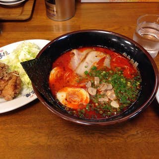 80点 チェーンのラーメン屋さん(*^^*) まぁトータルでとりあえず合格ラインかな^_^ ラーメンはからか麺てのを頼んでみたm(_ _)m ちょっと旨味にインパクトがないかな? 唐揚げはとりあえずモモ肉を使用してたのと、味的には少し甘めだが、美味かった(^_−)−☆ よくばりセットなので餃子がついてきてたのだが、餃子は大したことなかった(ー ー;) 1番美味かったのが唐揚げ(笑)