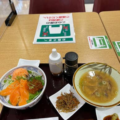 ヘルシーランチを求めて久しぶりに。ちょっといいお値段ですが海鮮丼がフードコートで食べられるのは嬉しい。 マグロアボカドごま醤油丼みたいなやつに味噌汁つけました。ごまダレの漬けにしてあり玉子と混ぜると卵かけご飯風で美味しかったです。みそ汁もう少し濃くてもいい気がします。 木の箸なのが地味に嬉しい。