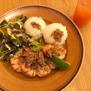 オーナーが働いていた、ハワイのカフェの、ガーリックシュリンプらしい。 いつか、本物のハワイに行ってみたいなー。