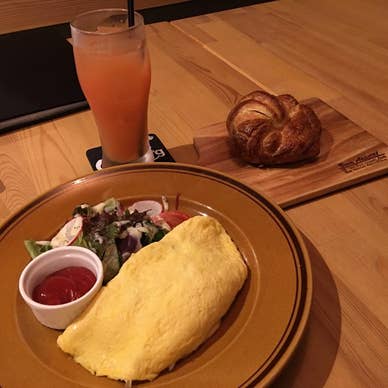 鷹野橋の商店街近くにできたアメリカンイタリアンと言うジャンルのお店。 イタリアンにアメリカンを冠する度胸と言うか、自信?に惹かれて入ってみました。 注文はモーニングのセット。 アメリカンオムレットのセットです。 モーニングと言えば、アメリカか名古屋のイメージ。 これは外さないでしょ。 セットには、サラダ、ドリンク、パンorライスが付きます。 パンは、食パン、焼き立てクロワッサン、焼き立てパンから選べます。 クロワッサンがオススメとの事で、クロワッサンを選んでみました。 オムレツの具も8種類から2種類が選べます。 迷いましたが、コーンビーフ(アメリカっぽい!)とオニオンを選択。 オムレツはフワフワ、クロワッサンもサクサクで良いですね〜。 場所柄、あまり混まないのも落ち着いていて良いです。 (お店的には良くないと思いますが。。) 家からもかなり近いので、ちょくちょく行く事になりそうです。