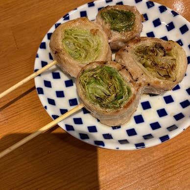 気になってた野菜巻きのお店。18時まではハッピーアワーでした。 エリンギの肉巻きトリュフ風味 うずらベーコン ネギ巻き レタス巻き つくね 鶏皮 エノキ ゴマカンパチ 巻いてある肉の食感もしっかりあって、なかの野菜がジューシーで美味しい。レタス、エノキが特に美味しかったです。 5時ごろ行って今一人で回してて串の提供に時間がかかるかもしれません、と言われゴマカンパチも頼みました。これも美味しかった。そういうの言ってもらえると、そう思って待てるのでそんなに待たされた感じもしなかったです。 もう少し安いと通いやすいなぁと思ってしまいました。でも高くはないと思います。