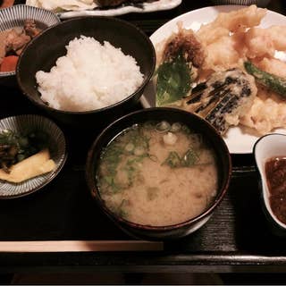 ランチで行きました。 12時に行ったのですが、支度中になっていてガッビ〜ンとしてたところお店の方に大丈夫ですよって言われ中へ、まだ仕込み中満載の店内奥へ。掘りごたつ式の広い木目のテーブルで落ち着きます。 天婦羅定食と焼き鳥定食を頼みました。かなりのボリュームでお腹いっぱいになりました。生ビールも飲んだので美味しいご飯を少し残してしまいました。(≧∇≦) 海老の天婦羅がぷりぷりで大満足です。次回は刺身定食を食べたいなぁ〜(^^) 一緒に行った子の中にお店の方の知り合いがいて、お土産にミカンとシシトウを頂いちゃいました。 すごく得した気分です。