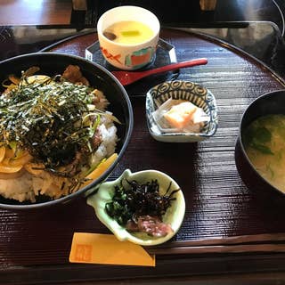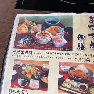自然豊かな環境の中で、手打ちそばを中心とした御膳が楽しめます。風味豊かなそばに加え、天ぷら盛り合わせやいなり寿司、お吸い物、小鉢、さらに変わり種の蕎麦グラタンまで付いたセットは食べごたえ十分。素材の美味しさが際立ち、落ち着いた雰囲気の中でゆっくり食事を堪能できます。お酒と一緒に味わうのもおすすめです。