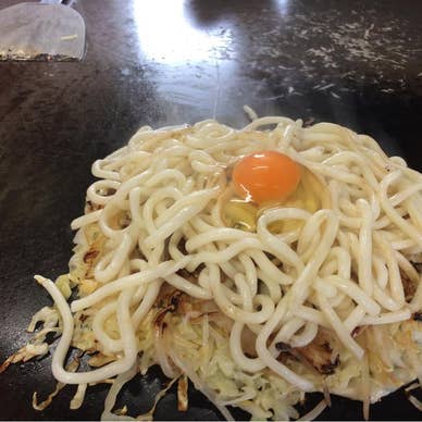 私用で安芸太田町加計まで来たので、食べログで調べたお店に初訪問✨ 山県郡安芸太田町加計3196-1 『さち』 肉玉そば(うどん) 500円 ソース ミツワ・ヒガシマルソース 創業33年、この店舗に移って12年のお店で店舗の感じに比べて鉄板は使い込まれてる感があります。 生地に鰹節を振ってキャベツ、もやし、豚バラの順に乗せたら少し置いてひっくり返したらヘラで押さえて平べったくして行きます。 ここまでは普通(笑) ここからビックリ‼️ 野菜が焼けたらひっくり返してソースを軽く垂らした上に蒸し麺を乗せ、その上に玉子を乗せ少量の生地を垂らしてひっくり返して暫く焼く‼️ 初めて見る玉子の焼き方‼️ しっかり押さえて焼いた野菜との一体感もあり、めっち食べやすいお好み焼きです。 明るいご夫婦で営まれてるお店なので、1人での初訪問でも気持ち良く食事のできるお店ですね✨