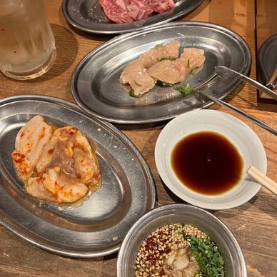 湯田温泉の飲食店が連なる通りを渡ると、そこにも民食添が点在する。 少し活気からは離れるが、その通りにも中々個性的な店が揃う。 そんなエリアの角にあるのがこの店である。 以前から何度も前を通っていたが、あまり気にしていなかったが、美味しくて安いという評判を聞いて出向いてみた。 店内は狭いテーブル席があり、土曜日と言うこともあり満席であった。 まずはミノ、ハツにモルモンミックス、レバーを注文。 これはいずれも期待通りで美味しい。 内臓系だけではなくハラミなど焼肉らしいものも揃っているが、珍しくかつ美味しかったのはアキレス腱部分。 これは初めて食べたが、食感が固すぎず味わいもあって美味しい。 またセンマイ刺しも美味しい。 あまり美味しいと思ったことはなかったが、この店のは味わい深くて酒のアテにピッタリだ。 ビールも良いが、レモンサワーが追加型可でお得なので、途中からはこれに切り替えた。 おでんがセルフで取れるのも、焼き物に飽きた時に嬉しい。 散々飲み食いして4000円程度で、極めてリーズナブルな値段設定が嬉しい。 #湯田温泉 #ホルモンが絶品 #焼肉 #リーズナブルな価格設定 #豊富な品数