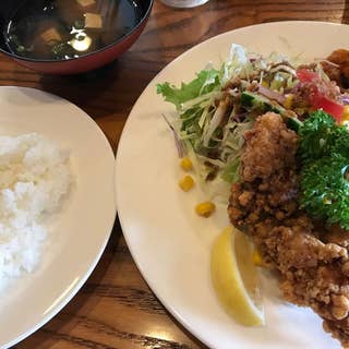 徳島の佐古にある居心地のいいカフェです。写真はA定食の唐揚げです。3種類のランチがあり、どれもボリューム満点です。サラダもゴボウや生野菜がたくさんあり、唐揚げでもヘルシーさ満点です。