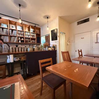 クラシックなLPレコードや音楽CDが並ぶ棚が目を惹く、落ち着いたカウンターがあるカフェ。壁の凹みに飾られた旅や音楽にまつわる本が、店主のこだわりや温かな夢を感じさせてくれます。店内には心地よいBGMが流れ、音楽好きの方にはたまらない空間です。おすすめは自家製ジンジャーエール。生姜のすっきりとした刺激が身体にしみわたり、ほっと一息つきたいときにぴったりです。