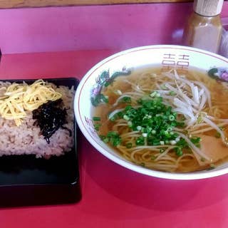高松市瓦町にあるラーメン屋さんで平日ランチで訪問。近くにはRettyで人気の「しるの店おふくろ」や「ほおかむり」があります。 デフォルトは「えーぶんラーメン」ですが安く抑えるためにチャーシュー、メンマ抜きの「うまいぶんらーめん」400円、「とりめし半分」200円を注文。麺は中細柔らかめ、スープは醤油味で昔ながらのラーメンと言った感じです。とりめしは入れ物に半分入っており、薄味でラーメンと一緒に食べてもよく合います。 また季節限定なのかざるラーメンもありました。夜も営業しており周りは飲み屋街なので締めのラーメンとして行くのもいいかもしれません。