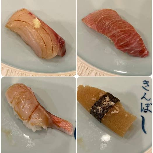 特上にぎり8貫…はまち、あいご、本マグロ、金目鯛、かずのこ、いくら、ウニ、穴子。やはり本マグロが1番だったかな。他のにぎりも十分に旨い♪