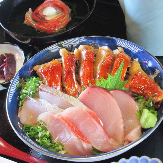 オールキンメ?と思いましたがキンメの造りだけでなく照り焼きが乗った丼でした。