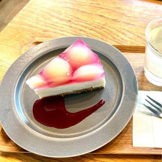 Retty 1っ星人気店❣ 同じ、「天神」の『リバーサイドカフェ』に『甘い物』を頂きに来ました。 『桃のレアチーズケーキ』(¥720)と『ドリンクバーセット』(¥530)を頂きます。 『ドリンク』は『グレープミックスジュース』と『ホットコーヒー』を頂きました。 店内スタイリッシュな『リバーサイド』が『オールウインドウ』の明るいカフェです。 『フレッシュビーチ』を使った『チーズケーキ』も美味しかったです。