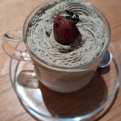 福岡の天神パルコ3Fにくつろげるカフェ発見。天神で下車し寄ってみました。『chano-ma 福岡』さん。 白を基調とした和みのカフェ空間。店内は通常のテーブル席とフロアから少し上がったところに、靴をぬいで足を伸ばせる人 気のマットレス席がありました。 ラッキーにも、その「マットレス席」に案内されました。テーブルは、テーブル天板をそのまま直置き。食事利用にはちょっと食べにくそう。私たちはカフェ利用なので大歓迎です。 『栗とほうじ茶クリームのラテ 700円』をいただきました。私は「Hot」で。連れもの者は「Iced」で。 「優しい甘さの栗のラテに、香り高いほうじ茶クリームをトッピングした秋の贅沢ドリンク」です。 カップの上1/3はほうじ茶クリームが占めています。その上には半分にカットされた和栗。下の方にラテ。ラテが生ぬるくなっていたのが残念。 甘さ抑えめで飲みやすい。飲んでいると下の液体がほうじ茶なのか、クリームがほうじ茶クリームなのか混乱してしまいました。とにかくほうじ茶味のラテでしたね! なんと言っても靴を脱いでゆっくりくつろげるマットレス席最高。寝転んでも全く違和感無し。リラックスできました!