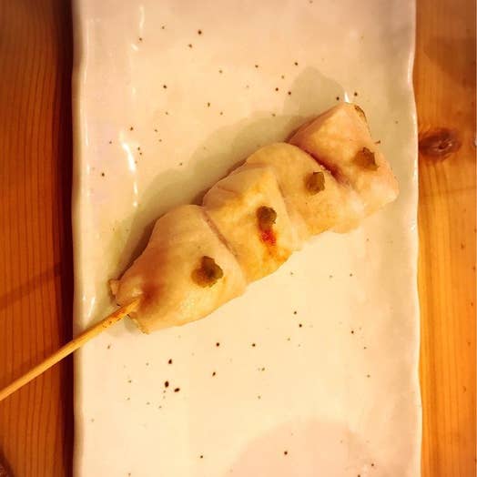 《薬院》串にぐるぐる巻き付けジューシーに仕上げた名物「とりかわ」