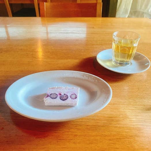 ランチ後のスイーツタイムに訪問し、数量限定の「白桃と紅茶ジュレのグラスケーキ」(1,080円)と「アイスコーヒー」(530円)をオーダー。さらに差し入れ用にお菓子を15点ほど購入しました。