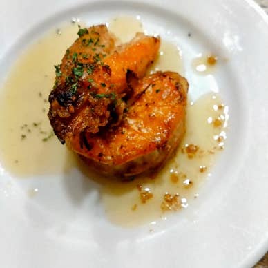 福岡の気の合う仲間とbisとろタカギで食事会をしました。 マンションの狭い階段を登って店内に入るとカウンター席が馬蹄型?に並んでいて結構広い店内でした。 メニューから呪われたパティ、鴨肉のソテーソース、海老のニンニク炒め、熟成牛肉のステーキアンドフレンチフライ、メキシカンオムレツを注文 どれもフランスの三ツ星レストランで修行した女性シェフ高木さんの渾身の料理でした。ワンマンなので調理に時間がかかりますが、待った甲斐があります。 カード払いで7,600円 ご馳走様でした。