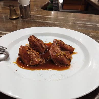 落ち着いた雰囲気の中、ステーキやパテ・ド・カンパーニュ、ワカモレなど本格的なビストロ料理が楽しめるお店。特にエイジングビーフのステーキは香ばしさと旨味が際立ち、お酒と抜群に合います。1リットルの「ガブ飲みワイン」はグループでも満足できる量で、ワインを楽しみたい方には嬉しいポイント。カウンター席は広くて会食にも最適、事前予約がおすすめです。シェフ一人で調理するため提供まで少し時間がかかることもありますが、どの料理も丁寧で味わい深く、リピートしたくなるお店です。