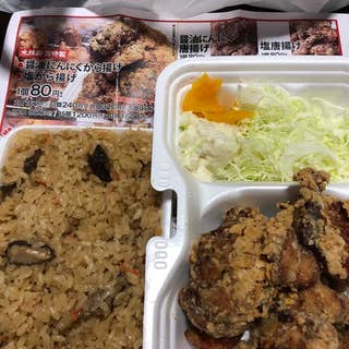 店内で食べられる弁当屋さん(^^) から揚げ弁当がボリューム満点との噂を聞いてやってきました。 塩から揚げと醤油にんにくから揚げのあい盛りの大盛り(から揚げ8個「4個ずつ」)を注文。 うん。ナイスボリューム!!! retty初投稿 #博多区