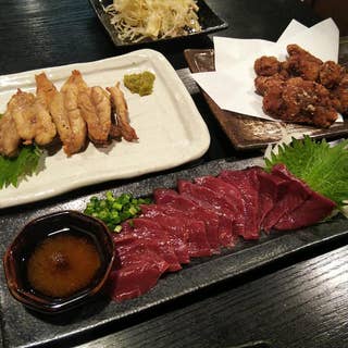 馬ハツ刺し食べに行きました。 他にクジラの竜田揚げ、せせり炙り焼き、とりおこわめしなどをいただきましたが、どれもとっても美味しかったです。 鱈の華、初めて食べましたが、日本酒がすすみました。 #馬刺