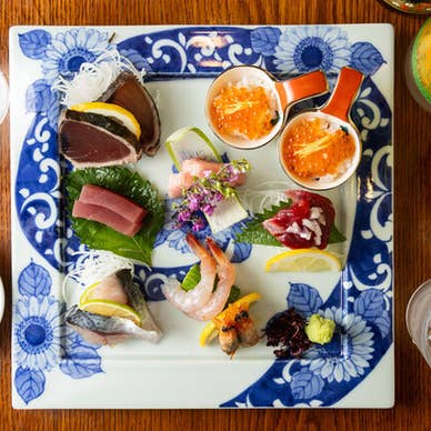 ご接待や記念日には、極上素材を楽しめるこちらのコースがおすすめ。アワビや本マグロのトロなどを盛り込んだ「特上お刺身盛り合わせ」や、希少部位の「黒毛和牛の炭火焼」、香ばしさを纏った「沖ノ島鰹の藁焼き」など、『いいものを少しずつ』をコンセプトにホテルの料理長などを歴任した料理人が自信をもってお届けするコースです。150分のプレミアム飲み放題が付いているので、幹事様も安心♪