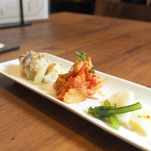 この日の「煮込み」は和紙に包まれたような演出で登場し、見た目にも上品。味もしっかりしていて、「唐揚げ」との組み合わせも良かったです。