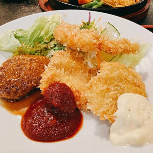 人気No.1とある、ハンバーグとチキンカツ、魚フライ、エビフライの盛り合わせである「衣笠定食」にも惹かれましたが、おすすめとあった「クリームコロッケ&おろしハンバーグ」をいただくことにいたします