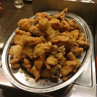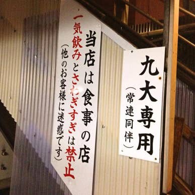 全国でも激レアな厳しい掟のある店。まず九大、県警関係者しか来れない。名前を覚えてもらわないと予約出来ない。人数変更、キャンセル遅刻は厳禁。初めて行くと、こんなところが日本にあったのかと思う世界が広がる。常連が店内放送に耳を済まし、自分のテーブルの料理がエレベーターで上がったとわかるとすぐに取りに行く。しかしその放送は初めての自分たちには聞き取れない。 そうしてやって来る料理は絶妙の激辛ソースで食べるもも焼き、唐揚げ、水炊き、雑炊が来て1200円ちょっと。男でも満腹でたまらない。 九大生はここで昼食べて夜食べないと言う生活を送り育って来たとか。もはや伝説のこのお店も家族経営で大将も高齢。まわりに行けるコネがある人がいたら一度連れて行ってもらおう。