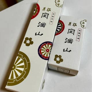 太宰府天満宮御用達の菓子屋である梅園さん。 ここは、宝満山という卵でつくられた甘い羊羹のようなものがウリですが、試食をした時に結構甘くてアレだったので、他のを購入しました。 東風梅 220円 よろつよ 700円 こちのうめ、は太宰府天満宮ゆかりの菅原道真の「東風吹かば にほいおこせよ 梅の花 主なしとて 春な忘れそ」という短歌に由来した商品。とはいえ、梅の香りのするお菓子ではなくこし餡が入ったおまんじゅう。香ばしく焼かれていて、中のこし餡もなめらかでとても美味しかったです。温泉まんじゅうのようなしっとり系ではなく、もっと平たく、カラッとしています。 よろつよは、お店の代表的なお菓子である宝満山を乾燥させたもの。サクッとして口の中でふんわり溶けるのがめちゃくちゃ美味しい。とても上品で甘すぎず、お茶席でも重宝されると思います。