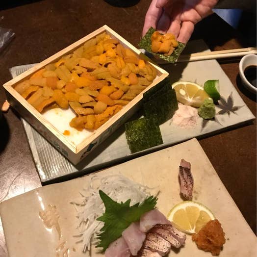 入ってすぐのカウンターにも女性客が一人で寿司摘んでる、この方は真昼間から職人さんとニコニコ話しながら…カッケェ~(;゚ω゚)