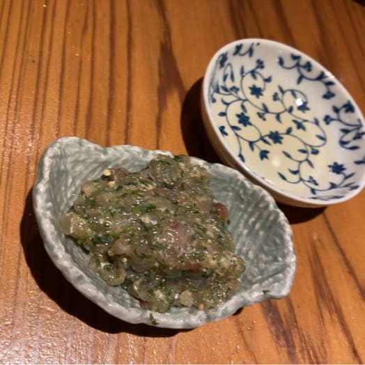 お通しに茄子と胡瓜の煮浸し、小松菜のお浸し