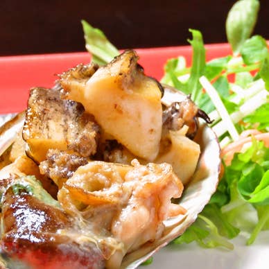 高級食材の鮑を丸々1個ご堪能ください。シンプルに、塩コショウにバターで!素材の香りと旨みがたまりません。お肉は全て長崎和牛を使用しております。