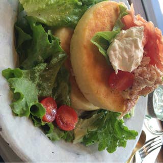 パンケーキが美味しいということで行ってみたのですが、今回は飲み物とパンだけでした。 パンはおかずパン、菓子パンどちらも種類が豊富で選ぶのに時間がかかります。 今回食べたカレーパン、中のカレーは相当甘めに作ってありお米には合いそうもないカレーです。しかし、サクサク衣のパンとはベストマッチ。甘いので子供でも安心して食べられます。 店内にはトースターもあり、あつあつのパンを食べることができます。雰囲気といいパンといい最高のお昼でした!