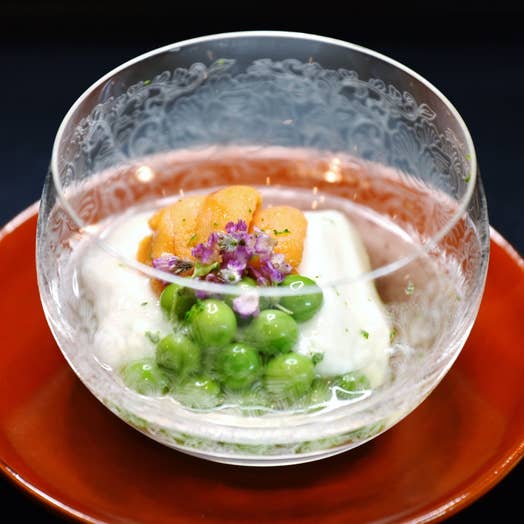 地酒(純米吟醸 小国蔵一本〆)にスイッチしつつ、追加でレバ刺し@2,500 を注文。コリコリした歯応え。今まで食べたことのない食感!絶品!!!!
