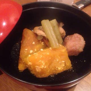 今凄くお気に入りのお店です。 ☆里芋と鶏肉の煮物の味は最高‼︎‼︎ ☆南瓜と海老団子の煮物も美味しい。 ☆豚トロとネギ炒め。 ☆牛肉のスネだったかな…? ☆エンガワチャンジャ。 お代わり追加しました。。。 ☆オニオン餃子…写真にはありませんが…柚子胡椒味で美味しいでした。 どれもこれもお酒に合うー*\(^o^)/*