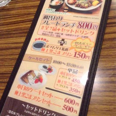 病院に併設されてるカフェです。 駐車場あり。 テーブル、カウンター、ソファ席。 今日のランチは豚の生姜焼きでした。 ➕150円でデザート付きに。 プレートランチに黒ゴマプリンをオーダー。ドリンクには黒豆茶をチョイスしました。 野菜がいっぱいでヘルシーなランチ( ´ ▽ ` ) おにぎりも雑穀米で美味しかったです♥️ 病院併設ということもあってか優しい味でお味噌汁が私的にツボでした‼︎✨ お味噌汁は子供にも給仕してくださり、また可愛い子供食器も貸してくださりました‼︎ 前回は12時頃にはもう完売で食べれなかったのですが、今回は天候も左右してか頂けました^_^