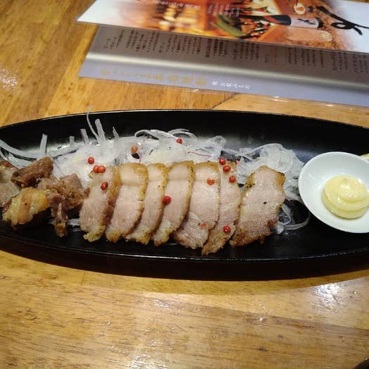 もんじゃ焼き。真ん中が丸く窪んでおり、