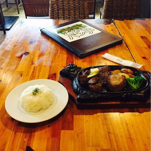 沖縄での初食はステーキ屋「キャプテンズイン」さん。創業は1978年の老舗、義父のオススメのお店です。国際通りにある此方のお店に行きました♪